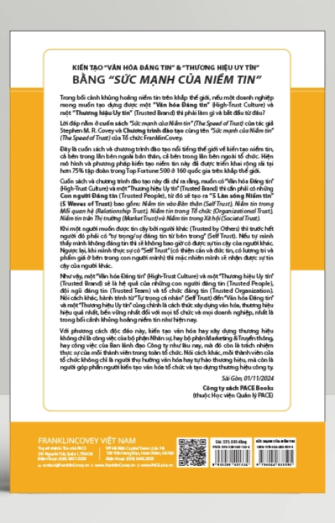 Có lẽ ai trong chúng ta cũng ít nhiều biết đến khái niệm về niềm tin, nhưng không phải ai cũng hiểu hết vai trò then chốt của niềm tin và quan trọng hơn là biết cách làm chủ nó. Tiếp nối truyền thống lan tỏa những nội dung phổ quát, mang tính trường tồn từ người cha, Stephen M. R. Covey đã cho chúng ta câu trả lời tuyệt vời về vấn đề đang rất được quan tâm hiện nay, một con đường mới mang tính cách mạng hướng đến hiệu quả và hạnh phúc lâu dài.
